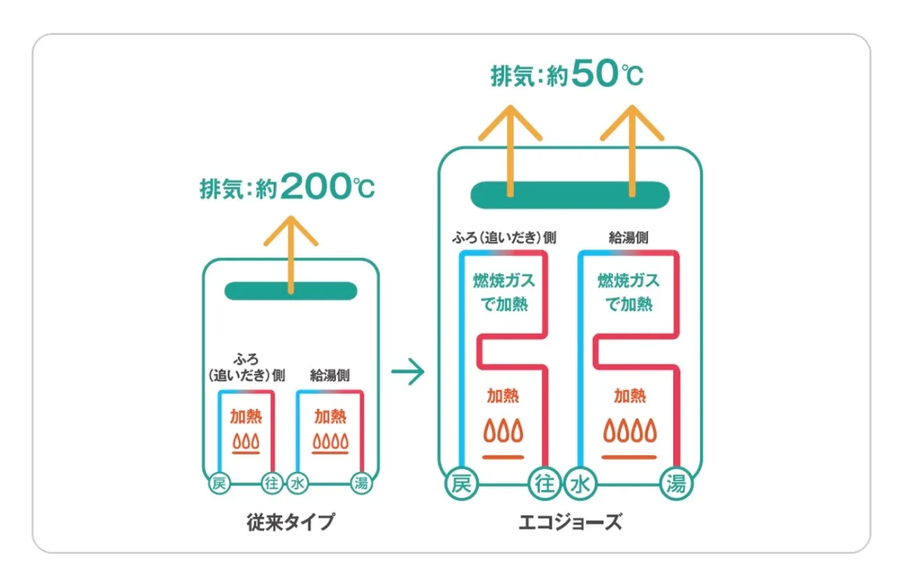 エコジョーズは今まで捨てられていた排気ガスの熱を