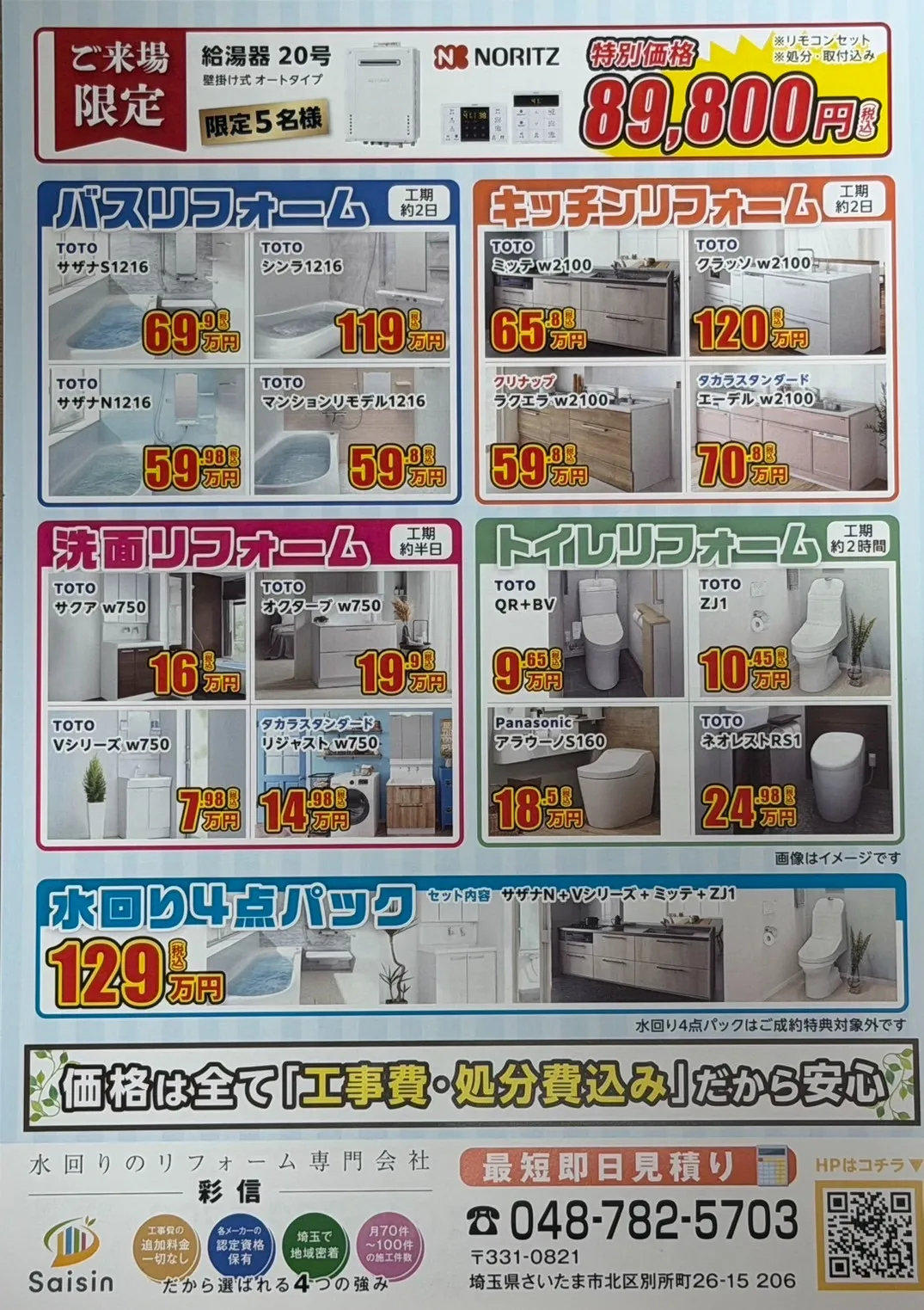 (画像2枚目に記載の給湯器20号 89,800円)